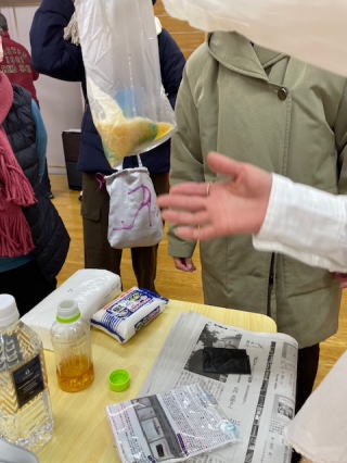 簡易トイレの凝固剤実験 |